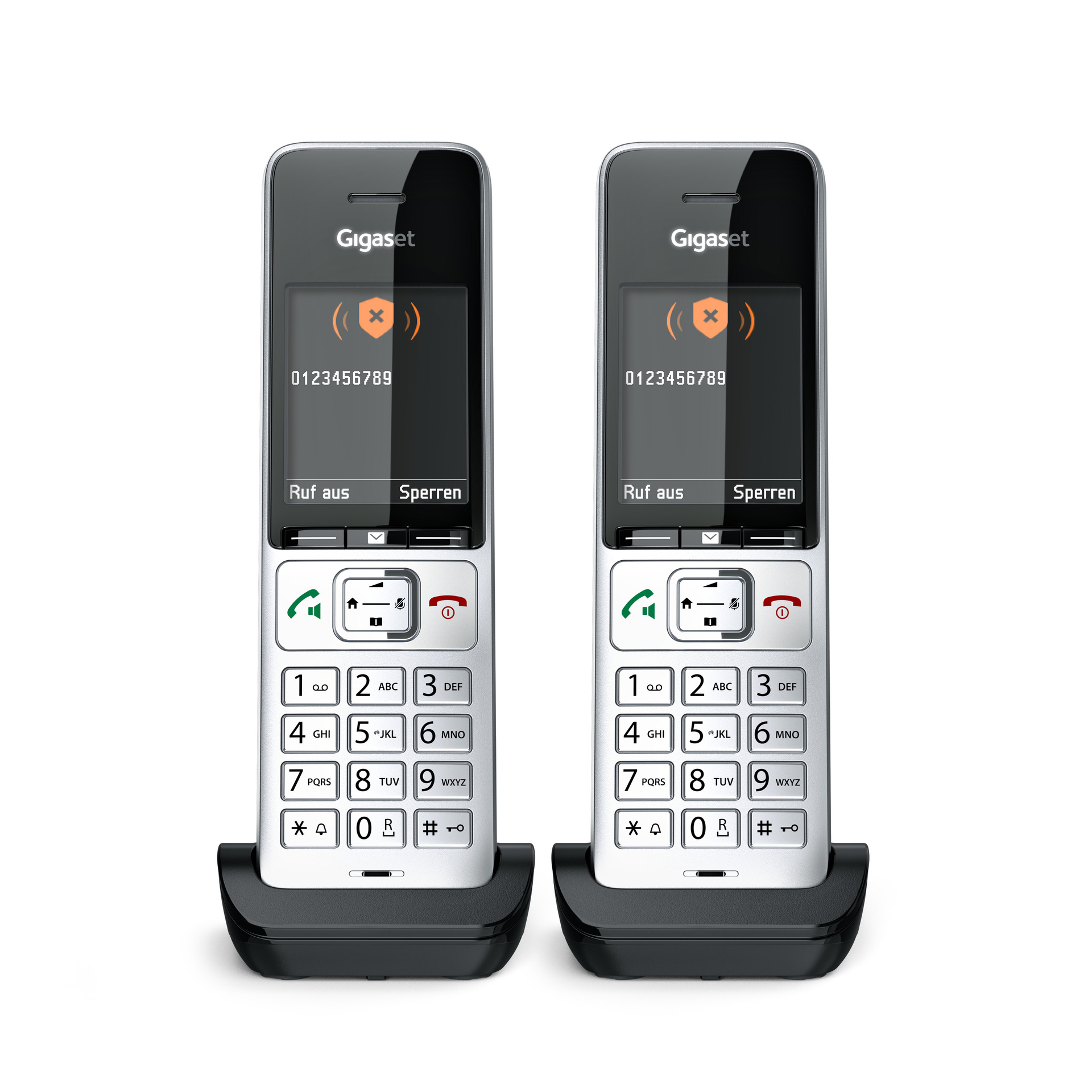 - 2 Mobilteile zur Anmeldung an bestehende DECT-Basisstationen und -Router