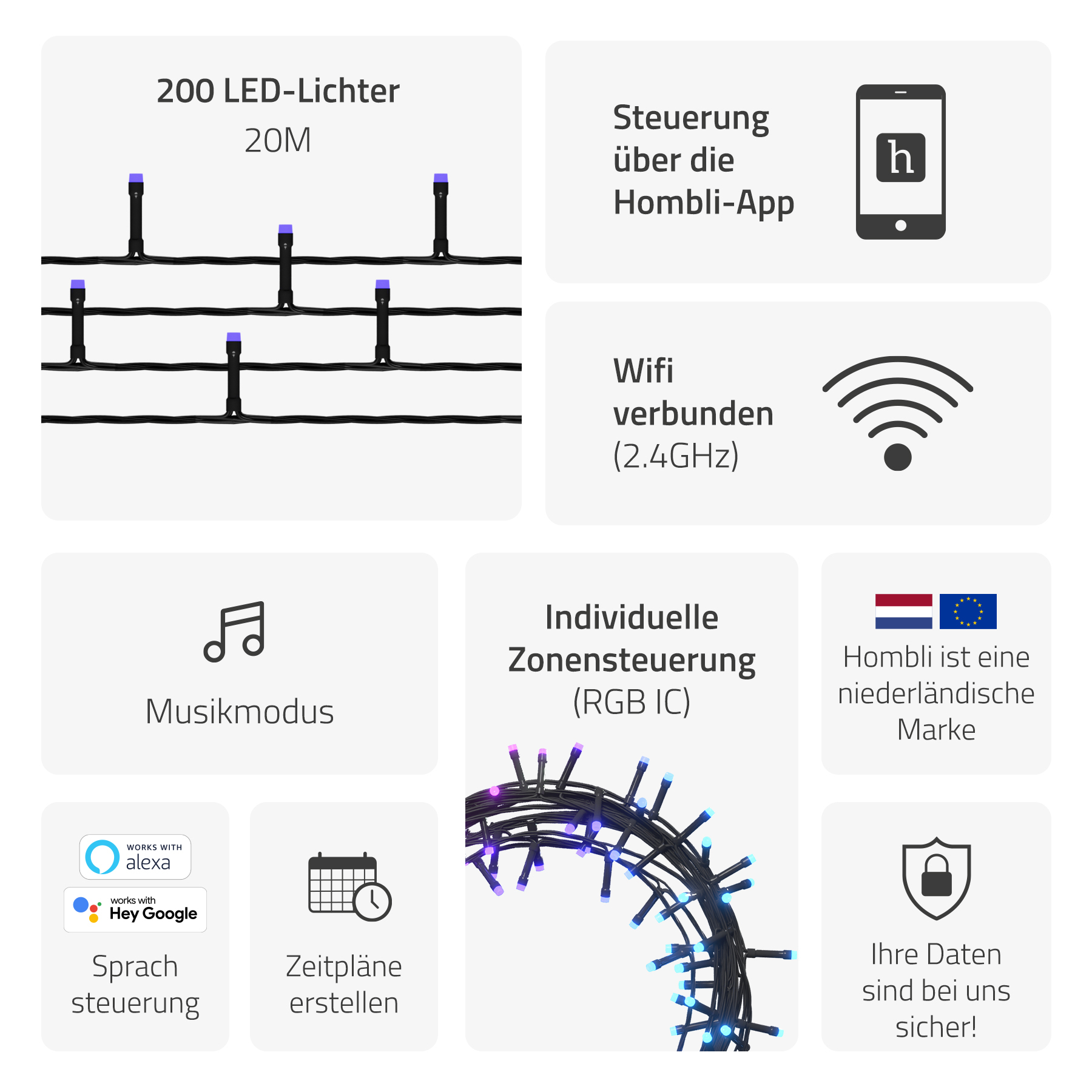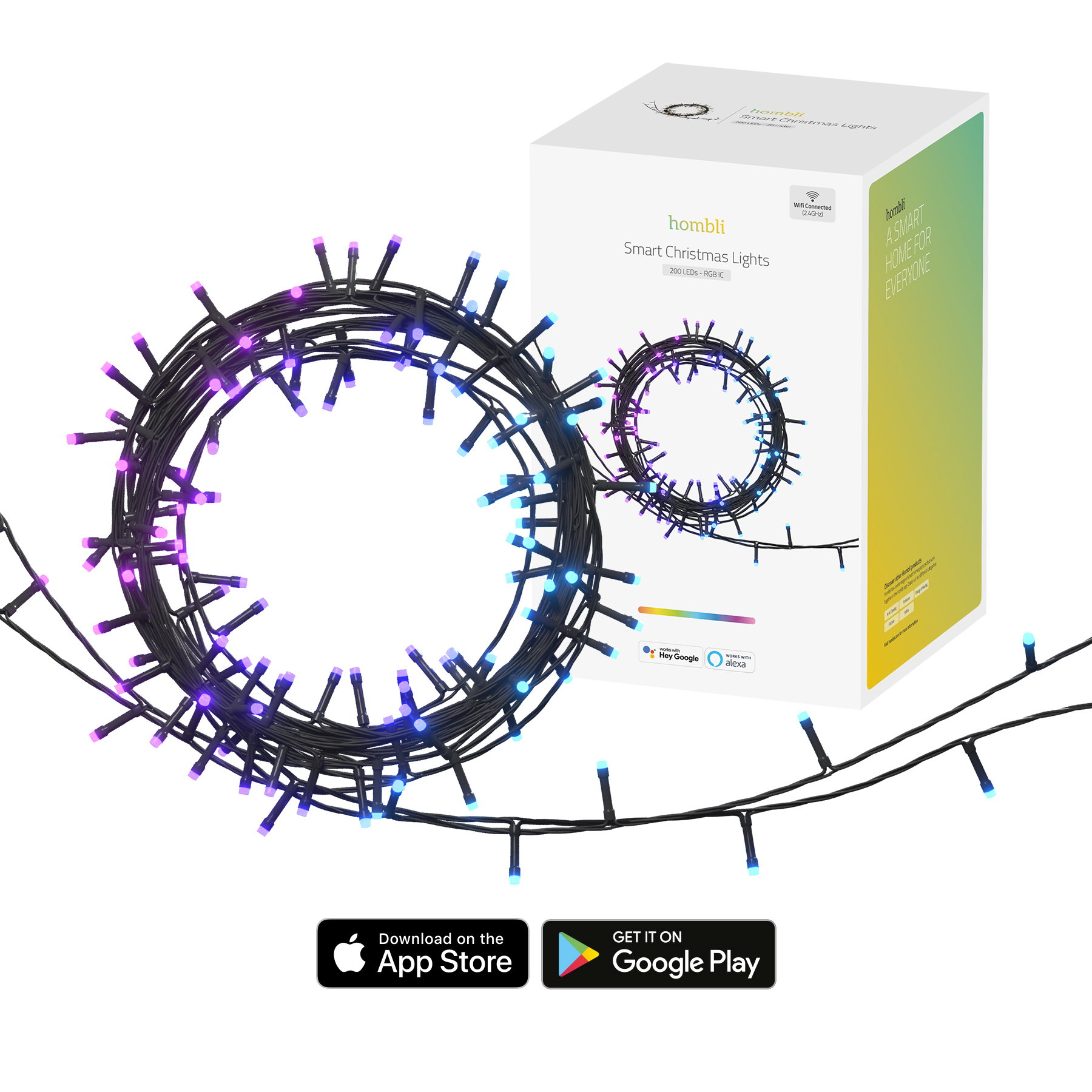 Hombli Smartes Weihnachtslicht Doppelpack WiFi 20m RGB Lichterkette 12W dimmbar