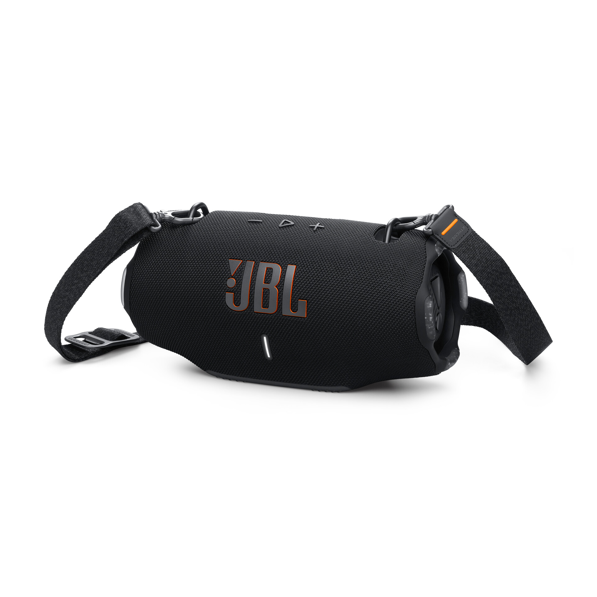 Kräftiger Sound, immer und überall. Endlich laut aufdrehen! Der tragbare wasserdichte Lautsprecher JBL Xtreme 4 liefert selbst bei höchster Lautstärke mächtigen JBL Pro Sound der nächsten Stufe mit einer außergewöhnlichen Dynamik, die er zwei leistungsstarken Tieftönern und zwei Hochtönern verdankt. Zwei pumpende JBL Passivradiatoren produzieren einen tieferen Bass, der mitreißt. Du möchtest deine Musik mit nach draußen nehmen? Der praktische Schultergurt macht es einfach, während die robuste Gummiummantelung und sein wasserdichtes und staubdichtes Design nach Schutzklasse IP67 sicherstellen, dass ein plötzlicher Regen oder ein Bad im See dem Spaß kein Ende bereiten. Wenn du noch mehr Sound brauchst, koppelst du einfach zwei Xtreme 4 und genießt Stereo-Sound. Für deine nächste Party verbindest du den Xtreme 4 per Auracast mit kompatiblen tragbaren JBL-Lautsprechern. Dann chillen deine Freunde am Pool zur gleichen Playlist wie alle, die sich im Haus aufhalten. Dank 24 Stunden Wiedergabezeit und einer praktischen Powerbank für deinen Lautsprecher reicht es, wenn du ihn erst am Morgen wieder auflädst. Darüber hinaus ist er mit Recycling Kunststoff und Recycling-Gewebe hergestellt. Der JBL Xtreme 4 liefert mitreißenden Sound – überall.