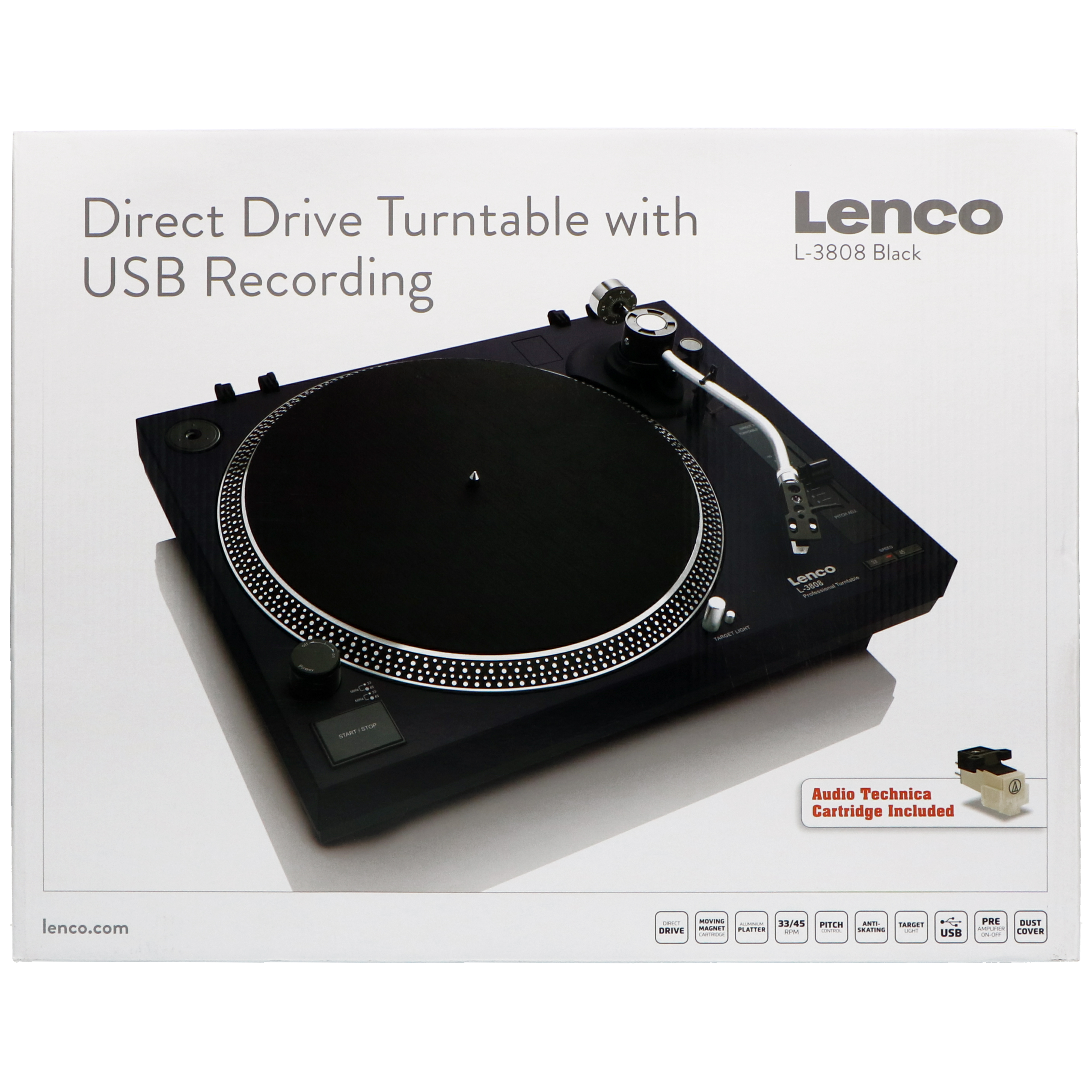 "Lenco L-3808 schwarz Plattenspieler Direktantrieb USB Stroboskop Vorverstärker"