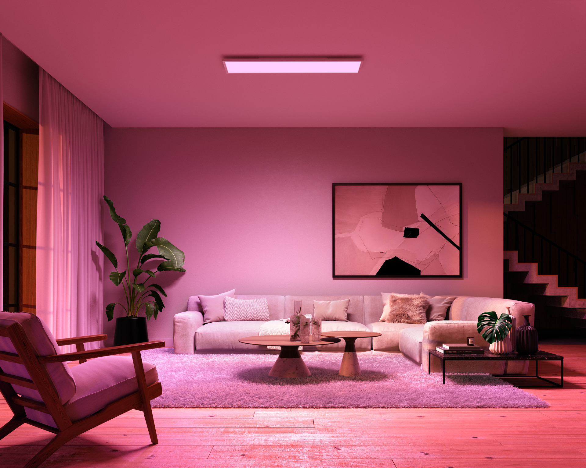 Das Hue Surimu Deckenpanel strahlt ein weiches, farbenfrohes indirektes Licht aus. Nach der einfach vonstatten gehenden Installation schließt es bündig mit der Decke ab. Mit seinem dezenten Look eignet es sich ideal für Wohn- und Schlafzimmer.