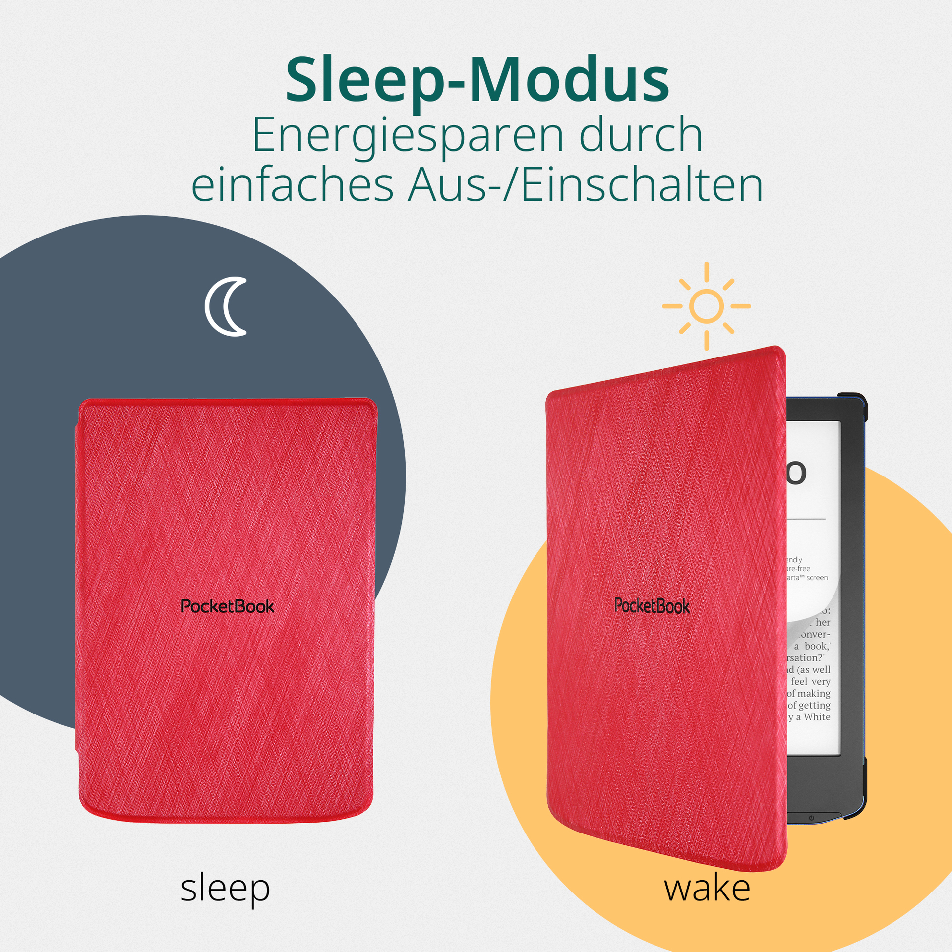 Der E-Reader wird fest in einer stoßsicheren Hartschale fixiert. Die Vorderseite sorgt für den Schutz des Bildschirms. Auf diese Weise schützt das Shell Cover zuverlässig sowohl die Rückseite als auch die Seitenkanten und den Bildschirm des E-Readers. Eingearbeitete Magnete verhindern, dass sich die Schutzhülle ungewollt öffnet. Die Schutzhülle unterstützt die Sleep-Cover-Funktion der genannten PocketBook-Geräte und hilft so die Batterieladung zu schonen. Beim Schließen der Schutzhülle wird das Gerät automatisch in den Sleep-Modus versetzt. Beim erneuten Öffnen des Covers wird der E-Reader sofort aktiviert.