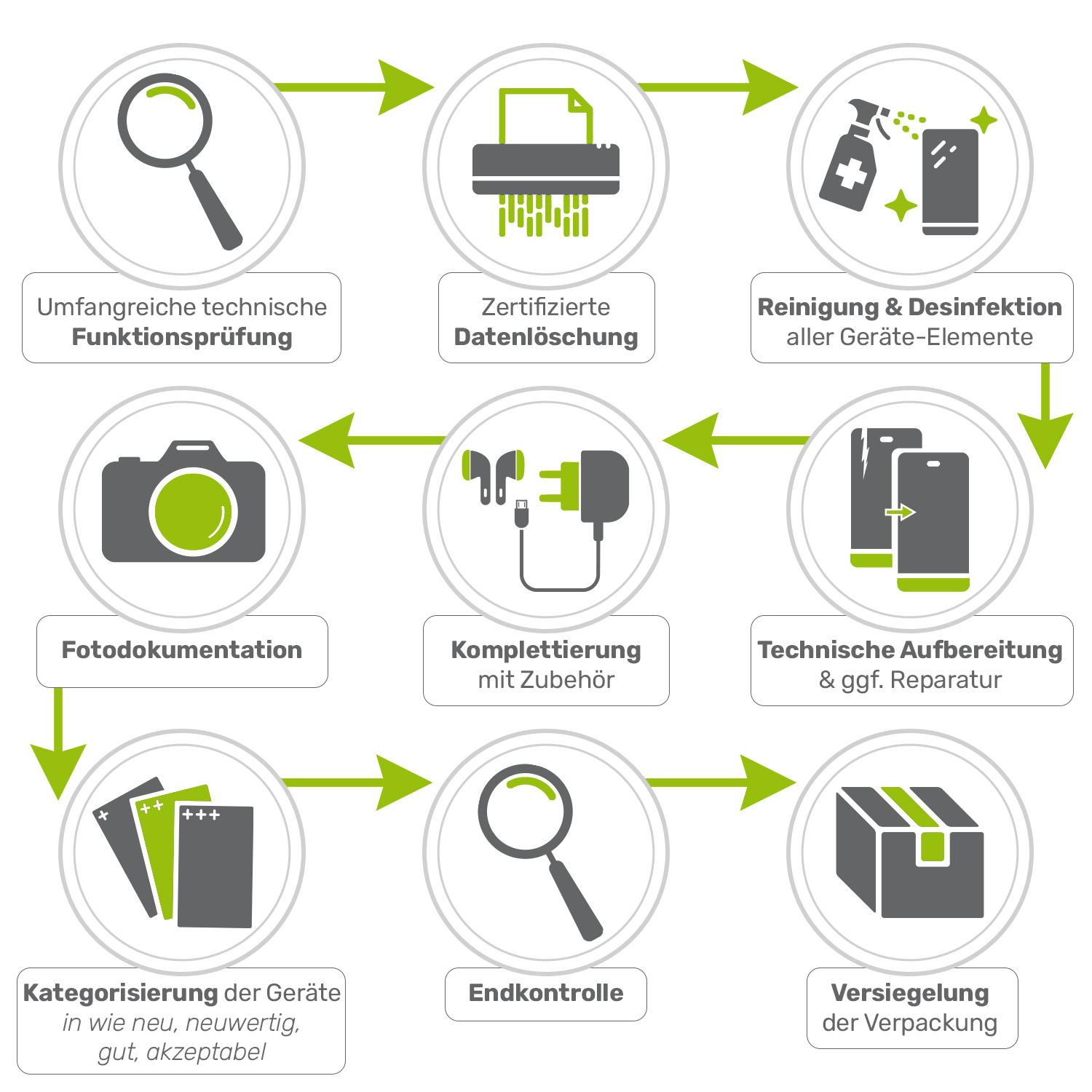 Geräte mit Sehr gutem Zustand (Hervorragend – Refurbished) stammen aus sogenannten Widerrufs-Retouren, Ausstellungsstücken oder geöffneten Sonderposten. Sie wurden geprüft und sind technisch und optisch in einwandfreiem Zustand. Bitte beachten Sie, dass wir über das Alter der Geräte keine Aussage treffen können.