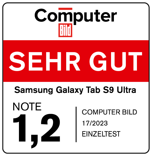 Du brauchst Raum für Inspiration, Kreativität und Produktivität? Davon kann das Galaxy Tab S9 Ultra dir jede Menge bieten. Auf der ultragroßen Displayfläche von 36,99 cm / 14,6 Zoll kannst du dich im XXL-Format inspirieren lassen – und danach direkt zum S Pen greifen, um deine eigenen Ideen groß herauszubringen. Halte mit Produktivitäts-Apps wie Samsung Notes im Handumdrehen spontane Geistesblitze fest, kommentiere Dokumente oder wandle Notizen in Text um. Beim freien Skizzieren, Zeichnen und Colorieren in diversen Zeichen-Apps kannst du den Künstler in dir erwecken. Dank brillanter Dynamic AMOLED-Technologie strahlt dein Galaxy Tab S9 Ultra nicht nur mit der Sonne um die Wette. Durch das staub- und wasserfeste Gehäuse aus robustem Amor Aluminum und IP68-Zertifizierung kann es dich bei Wind und Wetter an deine Lieblingsorte begleiten. Als Teil des Galaxy Ecosystems verbindet sich dein Galaxy Tab auch gerne mit deinem Galaxy Smartphone, etwa um Fotos oder Videos per Drag & Drop zu übertragen. Wenn es mal Zeit für eine Kreativpause wird, entspanne dich einfach beim Serien-Streaming oder deinem Lieblingsgame. Der starke "Snapdragon 8 Gen 2 for Galaxy"-Prozessor und der ausdauernde Akku bringen genug Power mit, damit du dich stundenlang in actionreiche Abenteuer stürzen kannst. Mit verschiedenen Covern und Protector Screens kannst du dein Galaxy Tab S9 Ultra übrigens noch besser noch besser auf deine Bedürfnisse ausrichten.
